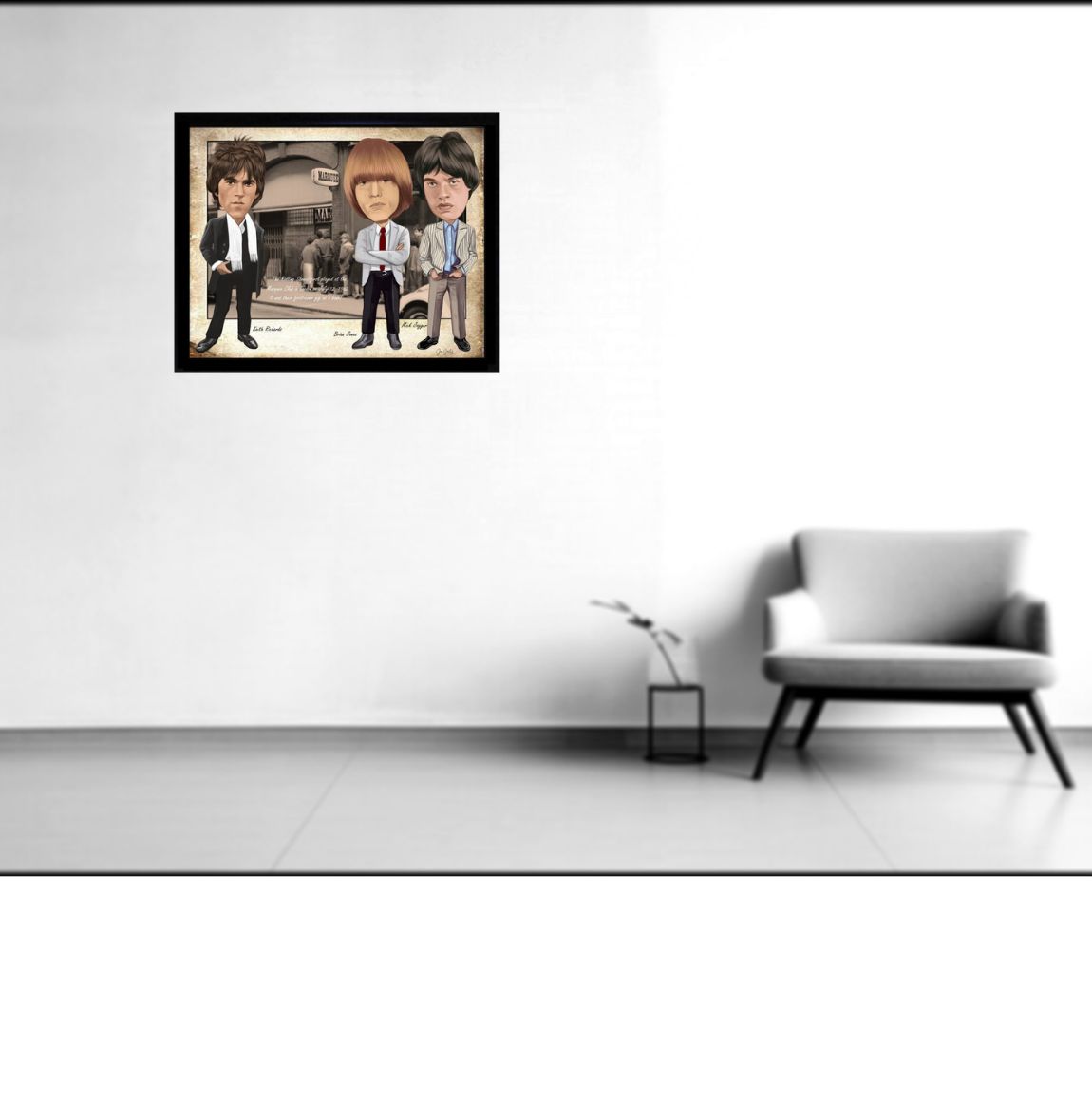 This striking retro-style artwork captures the electric birth of one of rock’s most legendary bands—The Rolling Stones. Set against an authentic archival backdrop of the Marquee Club in London, the piece features expressive caricatures of Keith Richards, Brian Jones, and Mick Jagger. Meticulously crafted with a vintage colour palette and highimpact detail, this image blends historical nostalgia with a bold modern twist, embodying the rebellious spirit of the early '60s London music scene. A must-have for collectors of rock history, fine art enthusiasts, or anyone with a love for the era that redefined culture