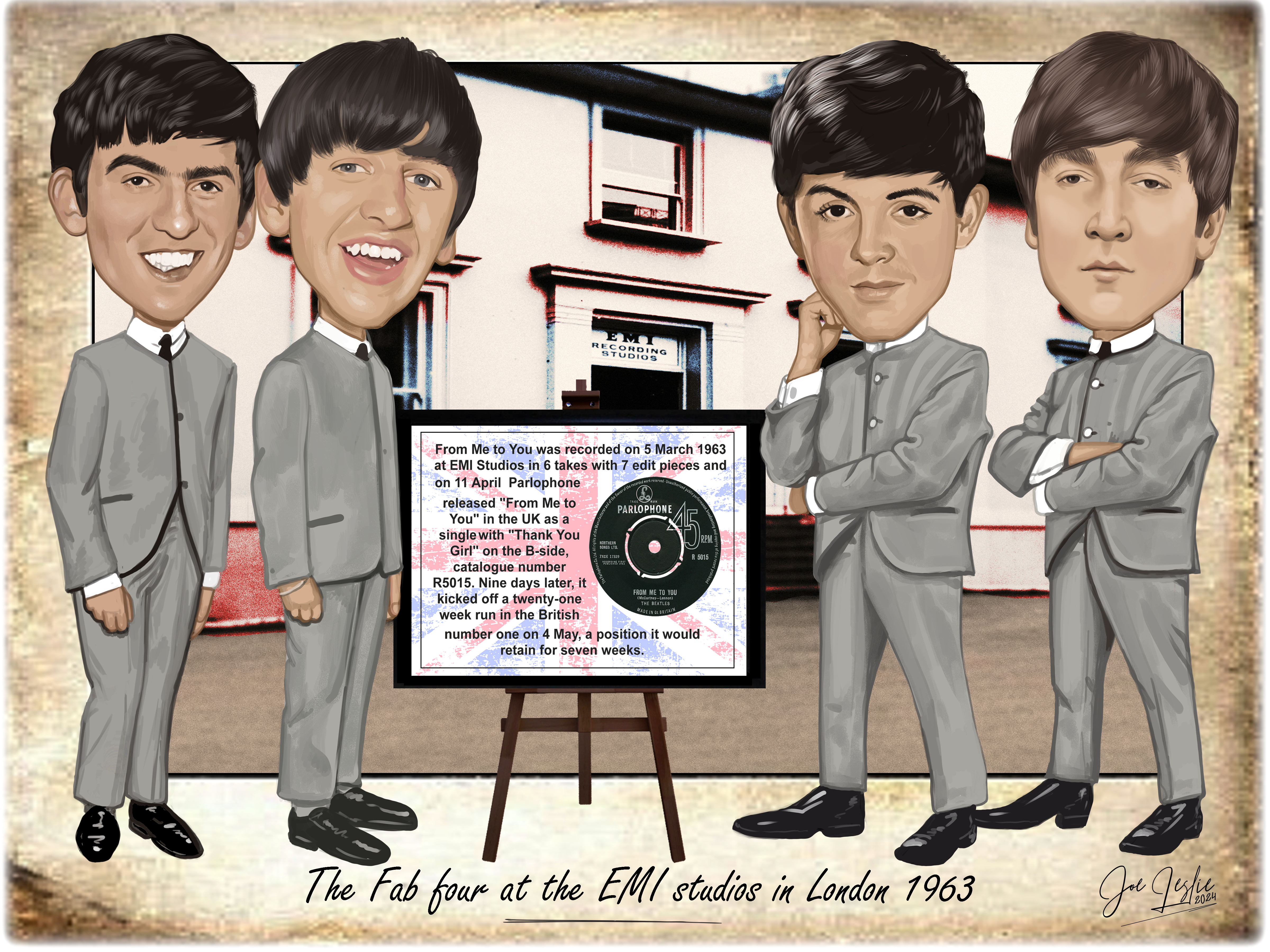 Absolutely love how this piece captures the infamous Fab 4 in such a quirky yet tasteful way. The caricatures of George, Ringo, Paul and John are spot on, and the backdrop of old EMI studios really sets the scene. A perfect addition to my retro collection!